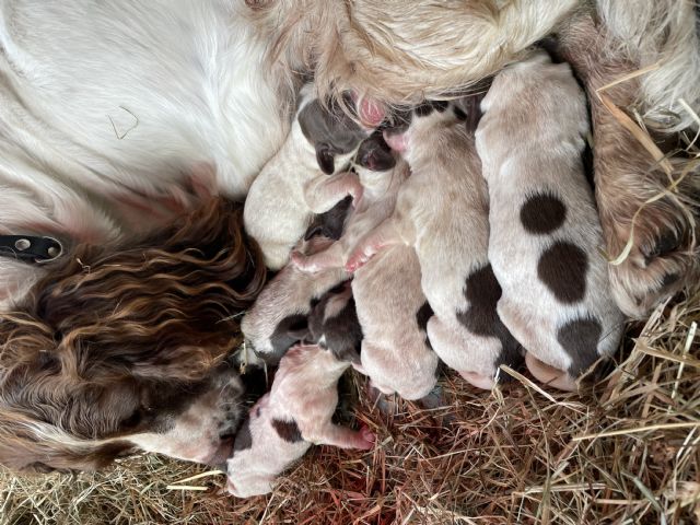 Aangeboden: Engelse Springer Spaniël pups, geboren 10 oktober. Beide ouderdieren zijn afkomstig uit jachtlijn. Half december mogen zij het nest verlaten. Ingeënt, ontwormd en gechipt. Familiale opvoeding. Interesse? Gsm 0032495517779