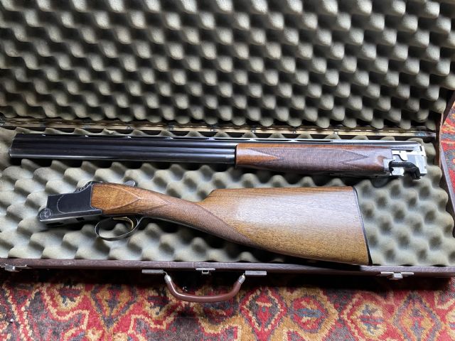 Laurona cal 12, 1/4 3/4 choke, loop 71cm, kolflengte 37,5cm, dubbele trekker € 300,-